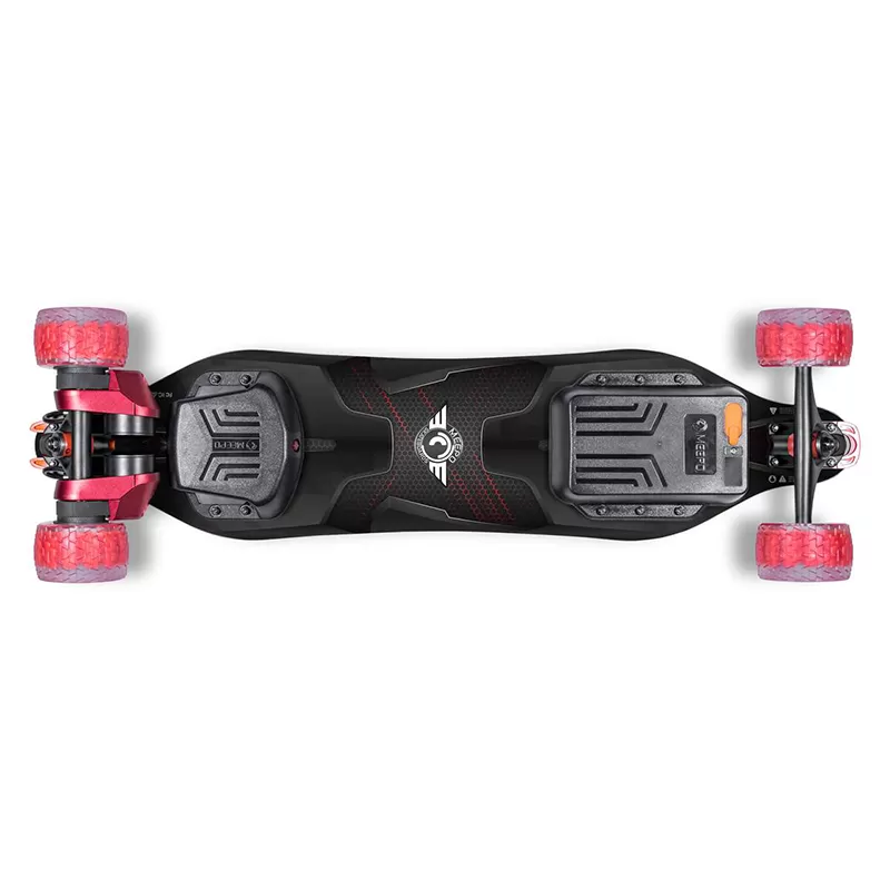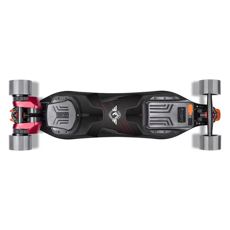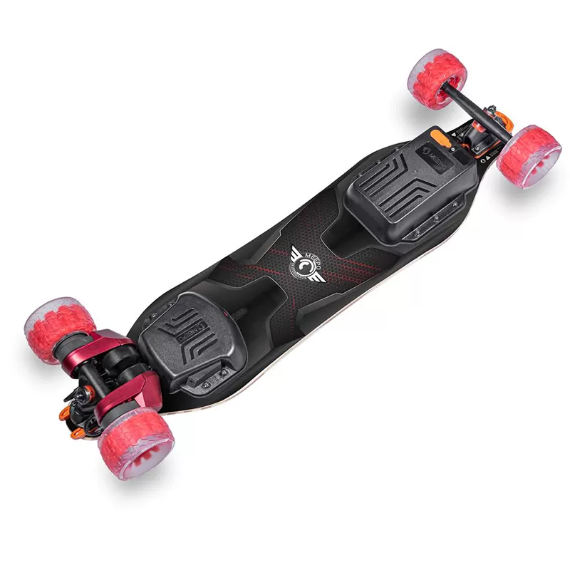 Elektrický longboard Meepo NLS Belt s bezdrátovým ovladačem, 4x 105mm Cloudwheels set, stojánek na elektrický longboard, multi-USB kabel, nabíječka, nářadí, náhradní šroubky a matičky, 100A Macaroons Bushings.