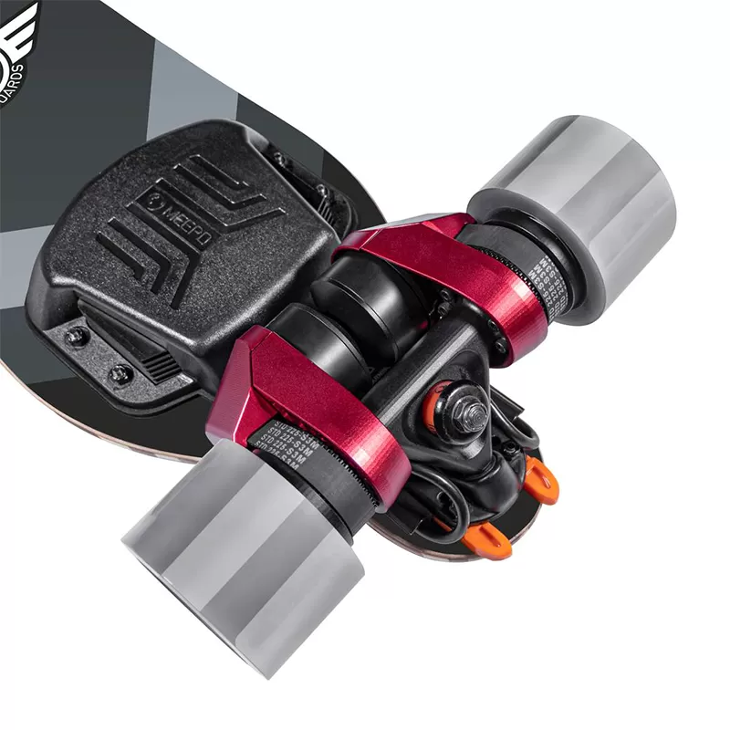 ✓ Výkonné motory Díky dvoum 900W belt motorům, které původně používaly Boosted Boards a které mají celkový výkon 1800W, je Meepo NLS Belt schopno vyvinout pořádný točivý moment. Kombinace motorů a baterie zajišťuje maximální rychlost s 85mm kolečky až 37 km/h. Díky tomuto výkonu dokáže také relativně snadno překonat až 30% stoupání. Vysoký točivý moment a rychlá akcelerace jsou hlavní přednosti modelu Meepo NLS Belt, díky čemuž jízda na něm opravdu stojí za to.