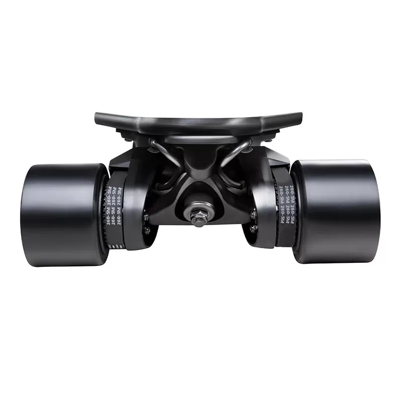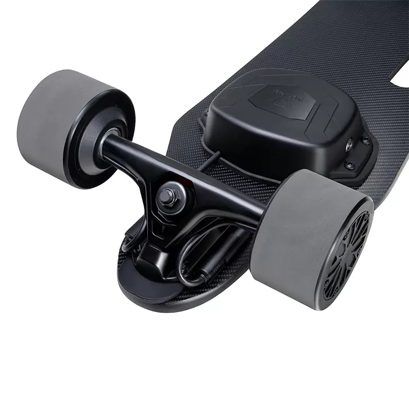 ✓ Vyměnitelný pohon Elektrický skateboard WowGo Knight může snadno měnit mezi HUB a belt pohonem. Oba systémy jsou si podobné co se týče výkonu, kdy HUB motory nabízejí kombinovaný výkon 1110 W a belt motory nabízejí kombinovaný pohon 1200 W. Je nutno zmínit že každá varianta pohonu má své pro a proti a i proto máte možnost výběru. HUB motory jsou jednodušší na údržbu, tišší a účinnější. Belt motory nabízí lepší točivý moment, možnost vyměnit kola za jiný typ či velikost a zejména přijemnější jízdu na horších površích. Knight je navíc kompatibilní s mnoha jinými motory pro elektrické boardy dostupnými na trhu. Tato možnost jednoduché výměny systému pohonu je vyjímečná vlastnot, kterou nenabízí ani většina násobně dražších modelů.