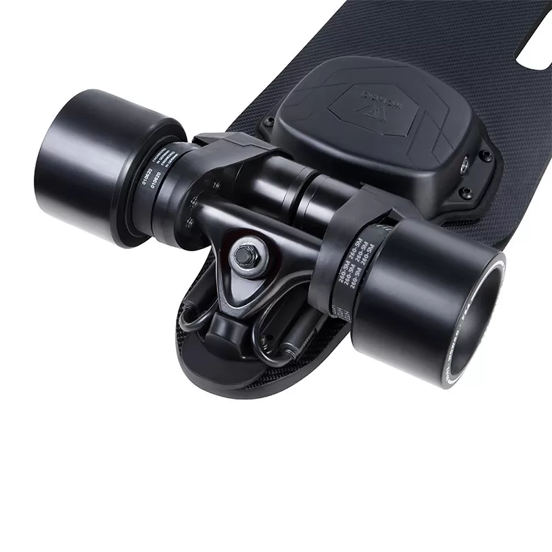 ✓ Vlastní design trucků Nové WowGo 3.0 trucky jsou v mnoha aspektech podobné Paris V2 truckům využívaným v jiných modelech od WowGo, ale jsou tam drobné rozdíly. WowGo 3.0 trucky mají base plate úhel 45 stupňů místo 50 u Paris V2, což přispívá k vyšší stabilitě při vyšších rychlostech. WowGo také navrhlo risery takovým způsobem že lehce přesahují přední a zadní stranu longboardu a efektivně fungují jako bashguards, ochraňující desku před nárazy a odřením.