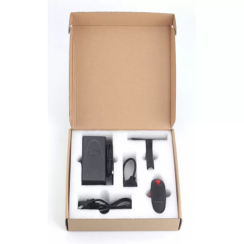 Elektrický longboard KOOWHEEL s bezdrátovým ovladačem, síťový nabíječ, USB kabel pro nabíjení ovladače, drobné příslušenství a návod.