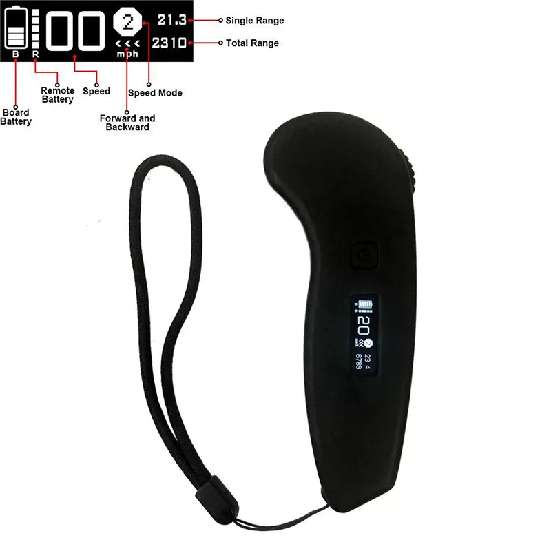 Nový ovladač s OLED displejem nyní zobrazuje důležité informace jako je aktuální rychlost, aktuální ujetá vzdálenost, celková ujetá vzdálenost, stav baterie na longboardu i ovladači a další.